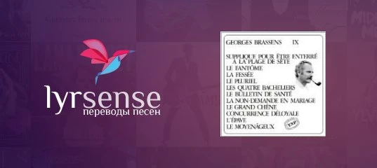 Когда моя душа помчит за небосклон, Чтоб слиться там с душой Гавроша и Манон И всех отверженных на свете, Пусть тело отошлют туда, где я на свет Родился, пусть возьмут в СВ один билет С конечной остановкой в Сете.