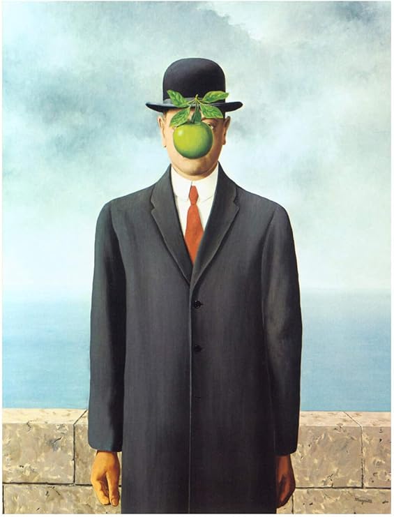 10) Отсылка к картине бельгийского сюрреалиста Рене Магритта «Сын человеческий» (Le Fils de l'homme). Согласно некоторым трактовкам картина изображает Адама нового времени в современном костюме, но все так же зависимого от соблазна (запретного плода):